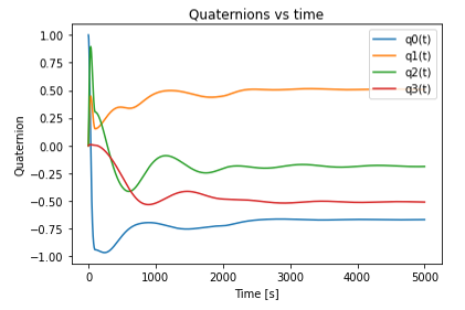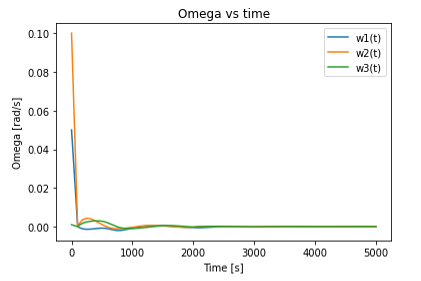 Approach: Finalize a proof of concept for attitude control and estimation by developing dynamical models. Python was used to create a rudimentary models focused on the detumbling of a satellite. Initial conditions were set for the torque, body rates, quaternion vectors and incorporating a simple PD controller. Trade studies were also performed on existing OTS components and attitude actuators modeled using SolidWorks.